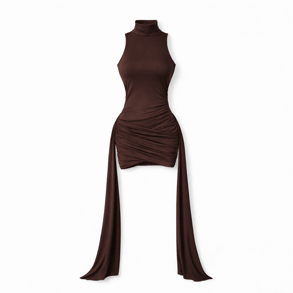 Combines fluid elegance with contemporary silhouette. Crafted from premium fabric, it features a graceful drape that moves with you, creating a refined line from shoulder to hem.