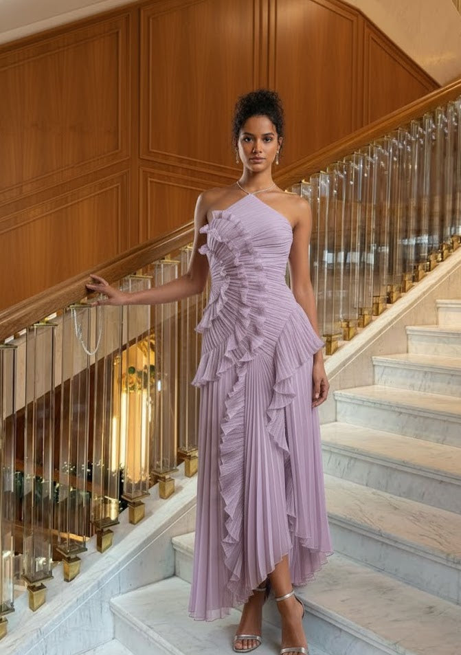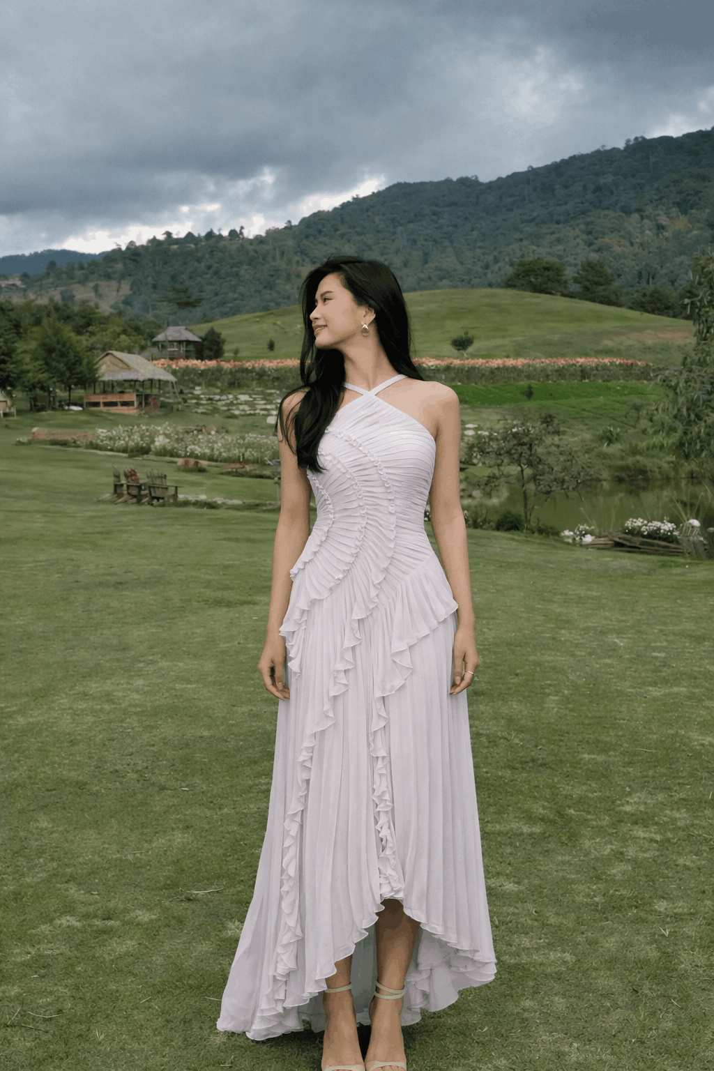 Ethereal sophistication meets timeless elegance in this celestial-inspired piece. Crafted with meticulous attention to detail, the Seraphine Dress embodies grace through its refined silhouette and luminous fabric composition.