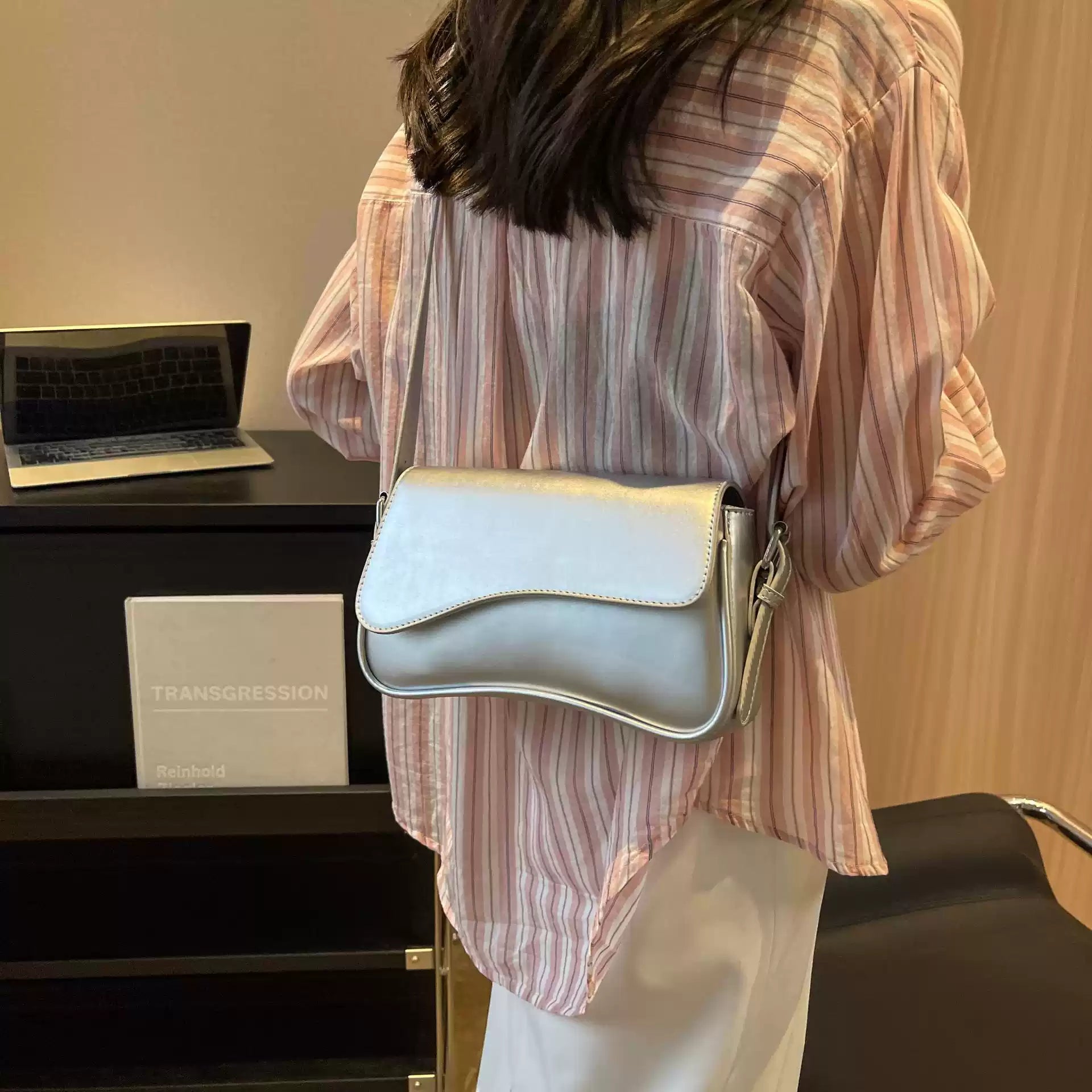 This chic shoulder bag features a smooth, structured silhouette with a refined flap design for a timeless, polished look. Crafted from premium-quality material, it offers just the right amount of space for your everyday essentials while remaining lightweight and comfortable to carry. Perfect for day-to-night styling, it adds effortless elegance to any outfit.